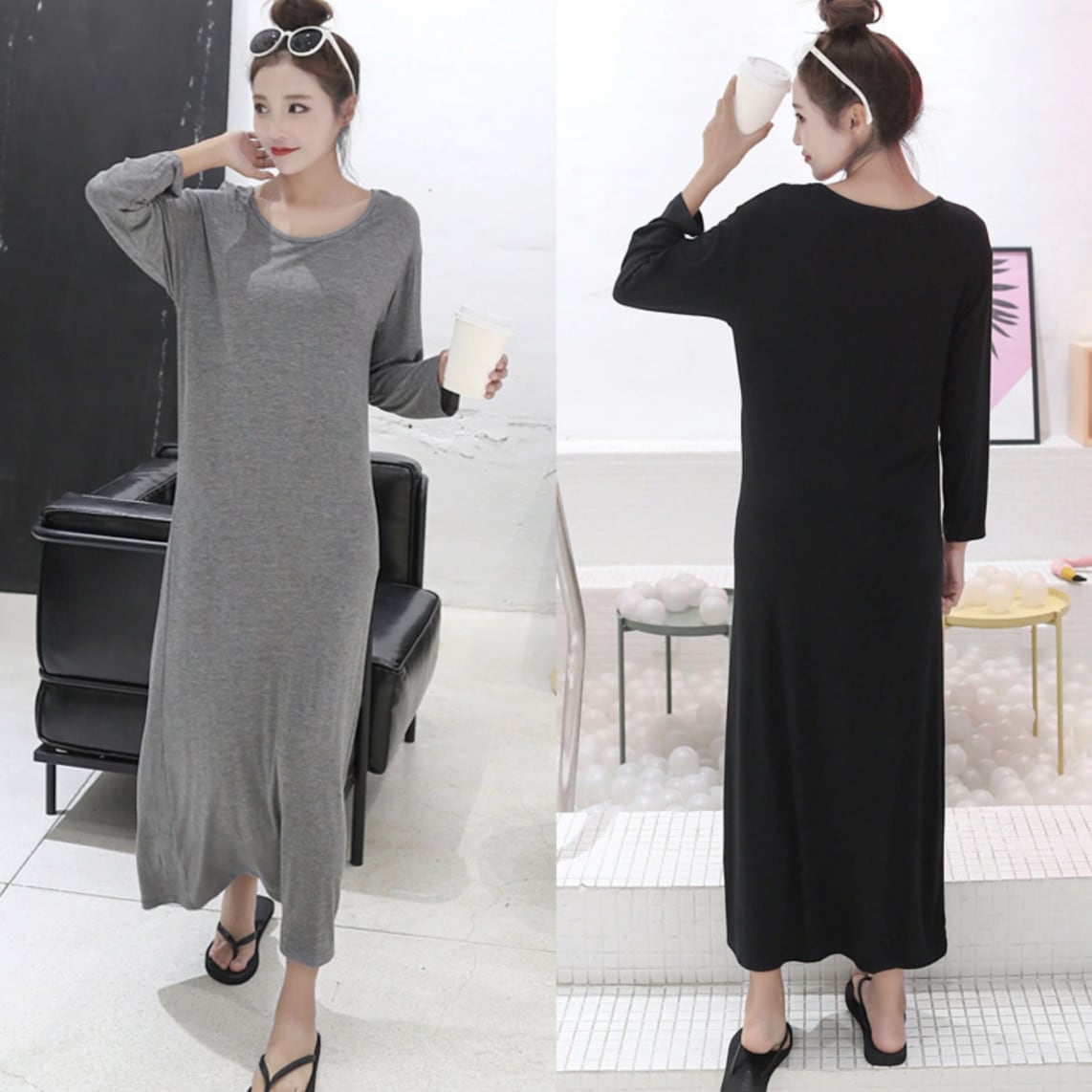 無地 ロング Tシャツ レディース ルームウェア ワンピース 長袖 シャツ ワンピ 薄手 ロンT ゆったり トップス 春 夏 秋 冬 ルームウェアレディース だぼだぼ クルーネック Uネック レデイース ブラック